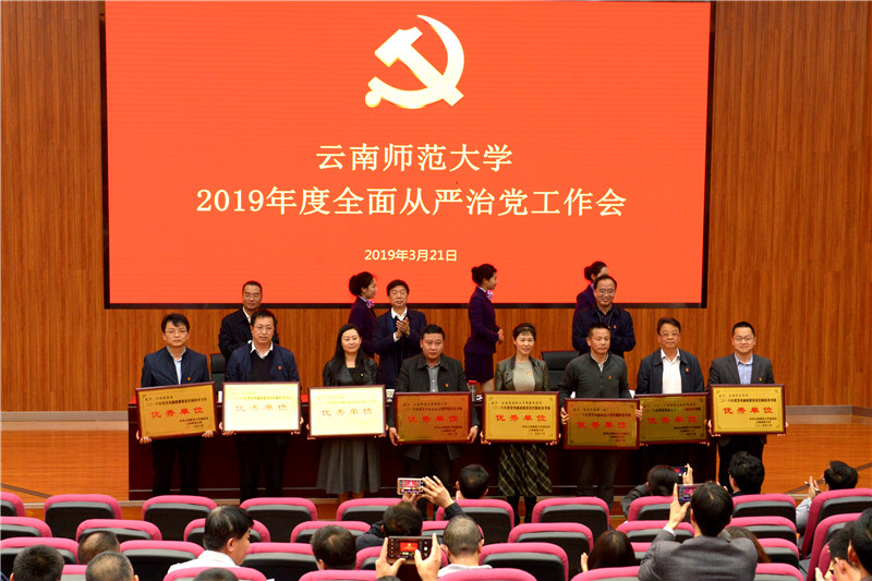 为总结2018年度学校全面从严治党工作,安排部署2019年全面从严治党重点工作任务,进一步推动学校全面从严治党向纵深发展,营造更加风清气正的政治生态和育人环境,3月21日下午,kaiyuncom官方网站2019年度全面从严治党工作会在呈贡主校区汇学2幢101报告厅召开。校党政领导班子成员,校纪委委员,含非领导职务的全校副处级及以上干部,各单位党委、党总支、直属党支部纪检委员,机关各部门、后勤处、资产公司全体科级干部,共400余人参加了会议。会议由校党委副书记、校长蒋永文同志主持。
