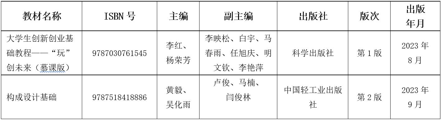 kaiyun官网教师编写的《大学生创新创业基础教程——“玩”创未来》(慕课版)与《构成设计基础》教材已入选首批“十四五”职业教育国家规划教材名单。根据《云南省教育厅关于组织开展“十四五”职业教育省级规划教材建设工作的通知》中“我省入选首批‘十四五’职业教育国家规划教材名单经复核后列入省级规划目录”的要求,现予以公示。