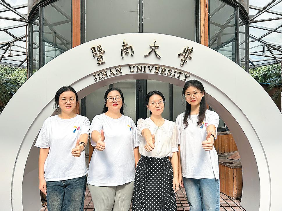 暨南大学学生团队成员与指导教师金颖(右二)合影。