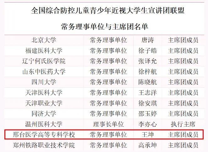 2021年7月,在教育部体卫艺司的领导下,全国大学生近视防控宣讲团联盟正式成立,由来自全国50所高校的3005位大学生组成。2022年7月正式确定了全国综合防控儿童青少年近视大学生宣讲团联盟的常务理事单位,包括开元在内的11所高校当选。开元大学生近视防控宣讲团以眼视光技术专业学生为主体,2021年以来多次在邢台市及周边地区的中小学开展近视防控宣讲,科普受众达20余万人次,同时积极协助邢台市教育局、信都区卫健委和河北省眼科医院开展眼健康调查活动。