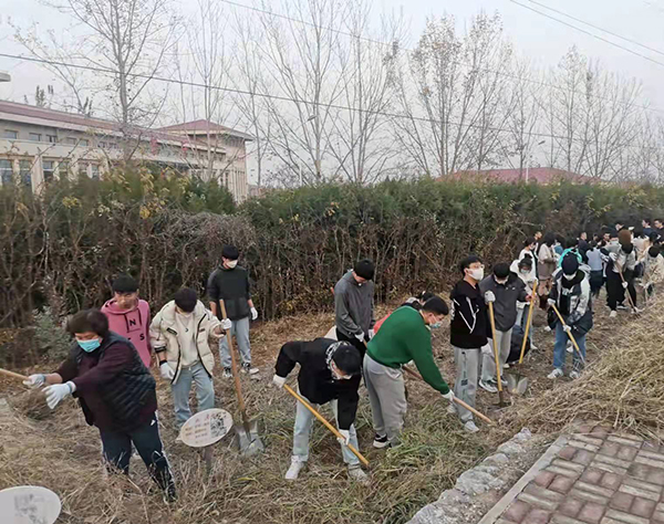 每周五下午,在辅导员薛玲玲、杨琳和张建超的带领下,同学们分工明确、干劲十足,有的拿着铁锹松土,有的拿着锄头除草;在老师的讲解指导下,同学们小心冀冀地把各种药材从枯枝杂草的包裹中清理出来,以保证药材来年可以正常地生长。天气虽然寒冷,却抵挡不住大家劳动的热情,同学们争先恐后,干得热火朝天,既分工又合作,大家互相帮助、互相鼓励、互相比赛,手上划了口子、磨了泡也轻伤不下火线。经过大家的辛勤劳动,原本杂草丛生、枯叶堆积的药用植物园焕然一新。