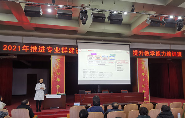 培训中,学校授课质量评估一等奖的8位老师进行了示范课教学展示;基础医学部李辉主任做了题为《争项目 建团队--助推科研水平 提升教学能力》的专题报告;参加培训的教师学习了关于课程思政建设、专业群建设、“三教”改革等方面的专家讲座内容。