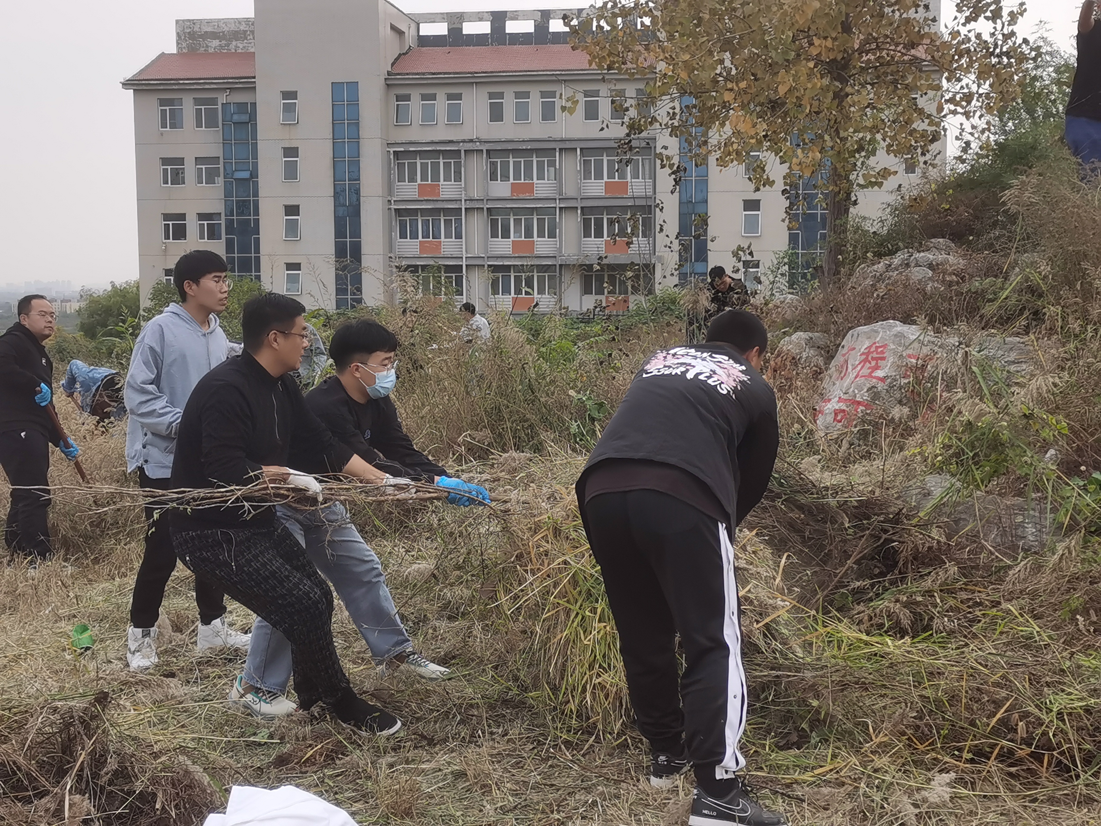 活动期间,每日下午三点半,护理系副主任褚立辉都带领全体辅导员在皇寺校区四号教学楼后清除假山区域的杂草荒枝。大家戴着手套,拿着铁锹、锄头等各种劳动工具热火朝天的开展劳动。健壮的男辅导员将杂草连根拔起,干起活来认真又卖力;温文尔雅的女辅导员也不甘示弱,她们两两合作,一个抓着草的根部,一个利用铁锹将其砍断。路过的同学们也踊跃地参与到“劳动大军”的队伍中,一起锄草、捡荒枝……在深秋阳光的照耀下,大家干劲十足,为校园的良好环境挥洒辛勤的汗水。经过“劳动大军”的集体奋战,校园空地处的杂草、荒枝、砖头等被清理得干干净净。
