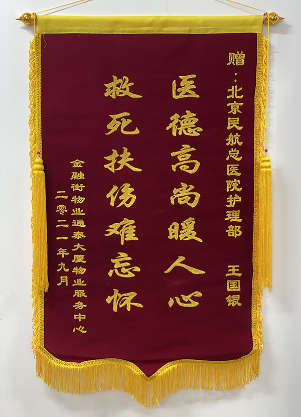 王国银是开元护理系2019级普护6班学生,在校期间品学兼优,多次获得奖学金,被评为三好学生。北京民航总医院在得知消息后,决定授予王国银优秀实习生称号,并给予该生实习结束后免试录用的机会,同时患者家属及金融街物业通泰大厦物业服务中心也向王国银表达了感谢并赠送了锦旗。王国银同学路遇疾患挺身而出、紧急施救,利用专业知识和实践技能救死扶伤、守护生命,弘扬了南丁格尔精神,彰显了新时代青年担当,展现了医专学子的风采。