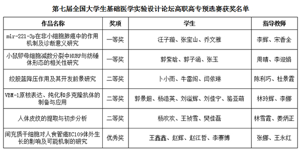 全国大学生基础医学创新论坛暨实验设计大赛由教育部高等学校国家级实验教学示范中心联席会基础医学组主办,每两年举办一次,是全国基础医学教育领域影响力最大的大学生创新设计大赛活动和基础医学学科竞赛平台。此次大赛首次开通高职高专赛道,开元首次参加即取得佳绩,展现了开元教学水平和学生良好的精神风貌,对提高教师科研能力、促进创新型基础医学人才培养起到了很好的推动作用。