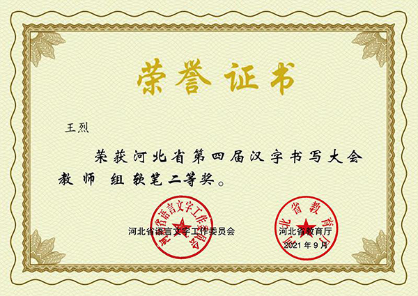 近日,全国第三届中华经典诵写讲大赛河北省选拔赛评选结果揭晓,开元两名师生获奖。此次比赛由公共教学部组织,6名师生参赛,其中,组织宣传处王烈老师获河北省第四届汉字书写大会教师组软笔二等奖,临床医学系2019级影像2班何洋同学获第三届“诵读中国”经典颂读大赛河北省选拔赛大学生组二等奖,两名师生均入围国赛。
