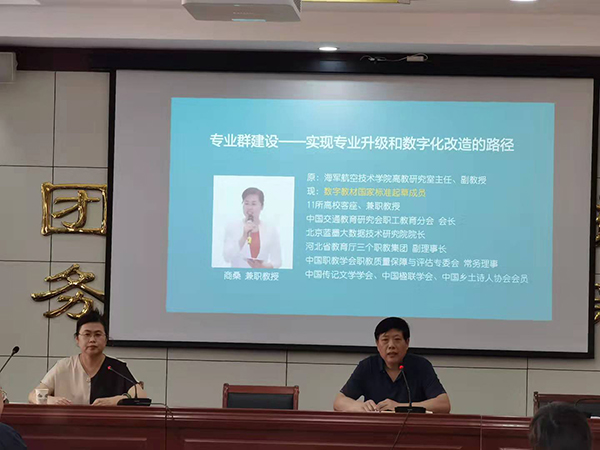 培训会邀请北京蓝墨大数据技术研究院院长商桑作了《专业群建设——实现专业升级和数字化改造的路径》的专题培训报告。商院长主要从专业升级和数字化改造的目的、需要做的重点工作、云教材建设、VR实验实训建设、现代化教学管理、现代化教学质量监测等六个方面进行了深入阐述,重点介绍了数字教材建设的方法和路径。她指出,教材是人才培养的核心要素,而数字教材是一种活页式的、工作手册式的、融媒体的、立体交互的、具有全内容大数据特征的、学习行为可精准跟踪、学习过程可追溯的智能化教学资源体,内容丰富、载体多样,能够激发学生学习兴趣,提高教学质量。由教材现代化推动教学现代化,由教学现代化实现教育现代化,未来数字教材会得到蓬勃发展。她强调,教师要带领学生共同完成数字教材的制作,从而加强学生对专业知识和技能的掌握,培养具有数字素养的技术技能人才。