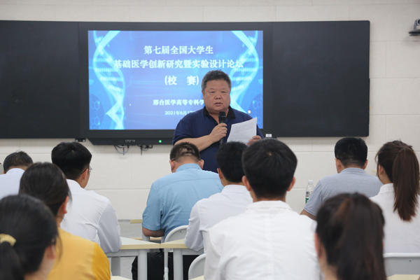 本次论坛由学校科研科、基础医学部主办,邀请了河北医科大学2位博士生导师王磊、孙绍光教授以及开元科研中心主任王晓凌教授担任评委,学校党委副书记、校长郑书深致开幕辞。郑校长指出举办全国大学生基础医学创新研究暨实验设计论坛目的是为了进一步强化科教协同育人,推动学生早进课题、早进实验室、早进团队,增强学生的原始创新精神和科研能力。希望参赛同学珍惜这次学习机会,团结协作、沉着应战,充分展现邢医学子的良好精神风貌。