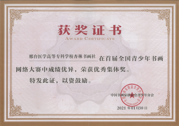 该项赛事由中国书画家联谊会青少年分会主办,是提升个人文化修养、审美情趣和增进交流、提高技能的平台。开元杏林书画社学生踊跃报名,在社团指导老师王烈的帮助下就作品内容和形式进行反复修改,最终取得了可喜成绩。