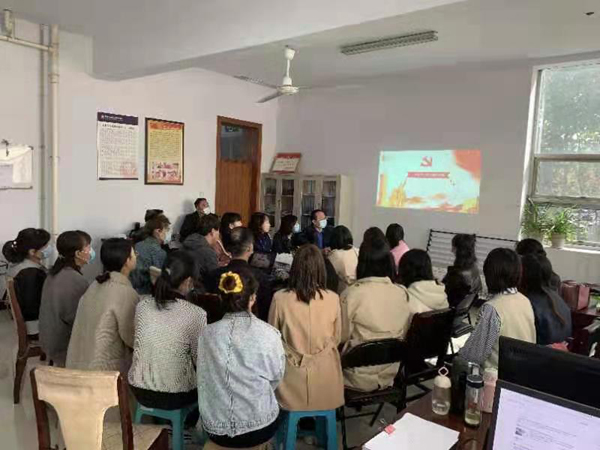 首先,王老师从在全党开展党史学习教育的“三个必然要求”强调了学习“四史”的意义。其次,结合“习总书记围绕中国共产党历史发表的一系列论述”和“共产党百年奋斗的光辉历程和历史贡献”等内容指出党史学习教育的重点。最后,王老师强调要在学深悟透上下功夫,将党史教育融入到实际教学和学生管理工作中去。