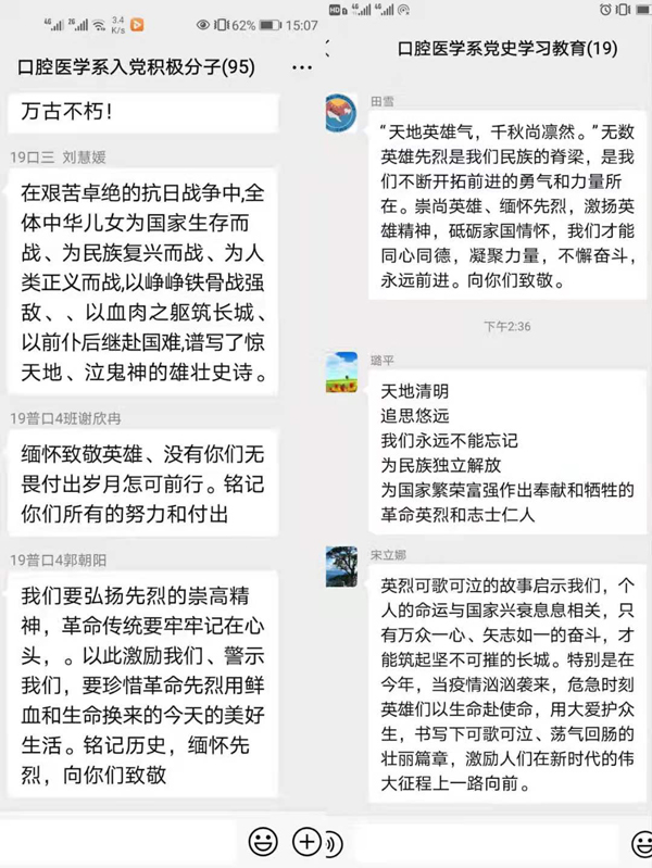 口腔医学系党总支开展“铭记党史、缅怀英烈”网上祭英烈活动