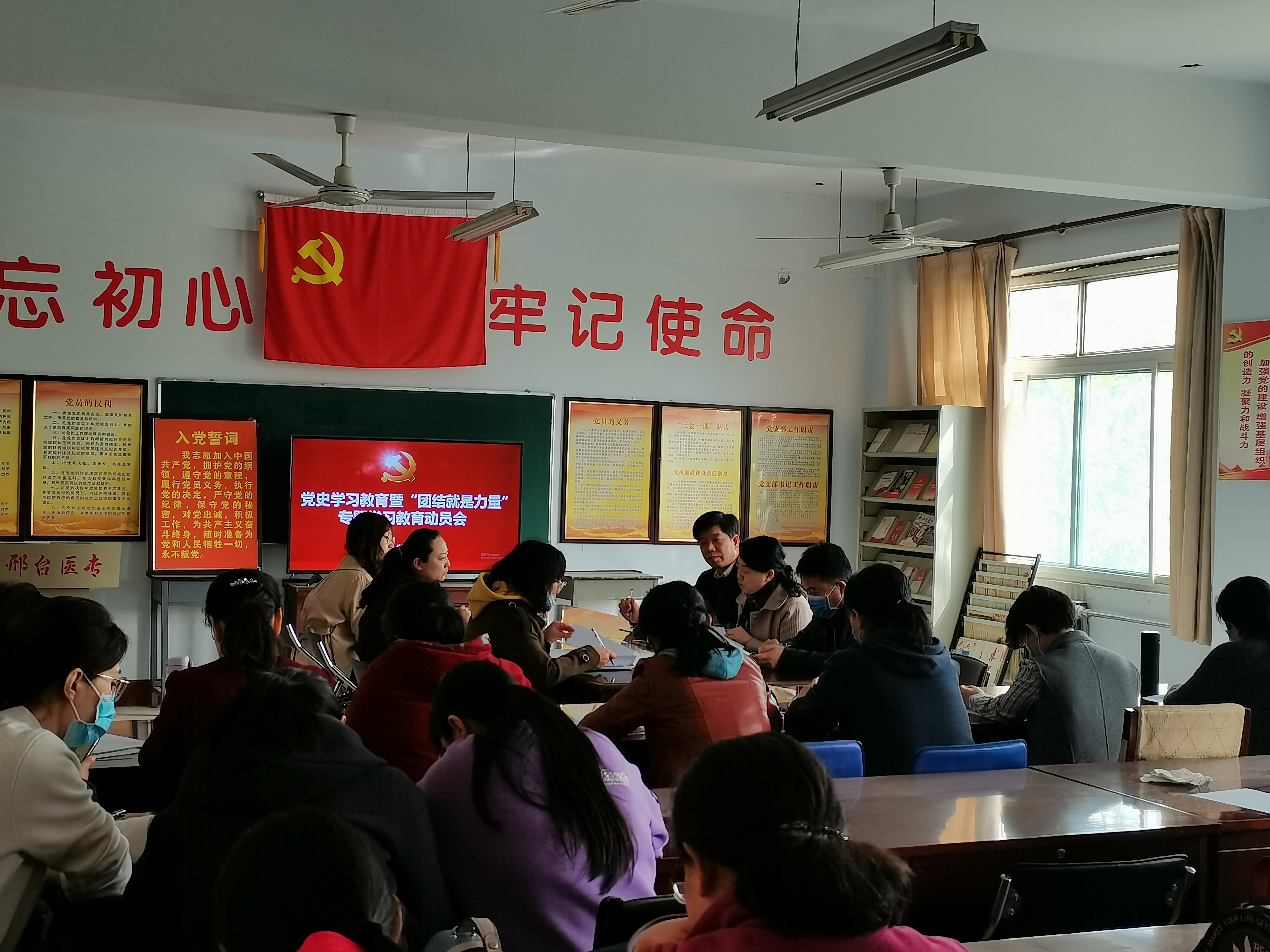 3月30日下午,临床医学系党总支在党员活动室召开党史学习教育暨“团结就是力量”专题学习教育动员会,党总支书记蒲爽主持,全体党员、教师参会。