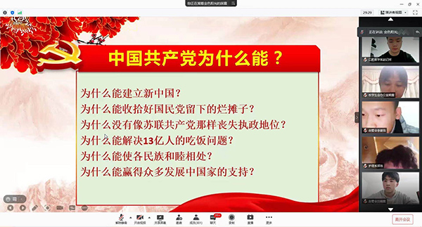 3月18日晚七点,开元第十一期马克思主义者培养工程暨团学干部培训班第二讲《回顾中国共产党带领中国人民从站起来到富起来的光辉历程》专题讲座在线上举行。