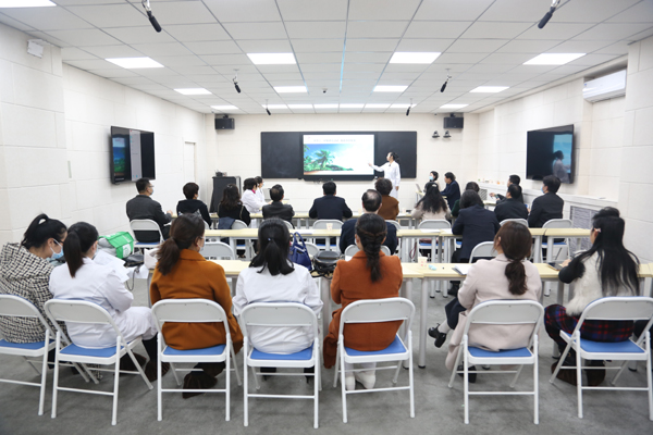 3月16日,“课程思政”示范课堂授课比赛决赛在智慧教室进行,学校党委书记田德荣,党委委员、副校长林雪霞亲临比赛现场进行指导,各系部主任、督导组组长担任评委,全校教师在图书馆北一层会议室通过网络直播观摩学习。