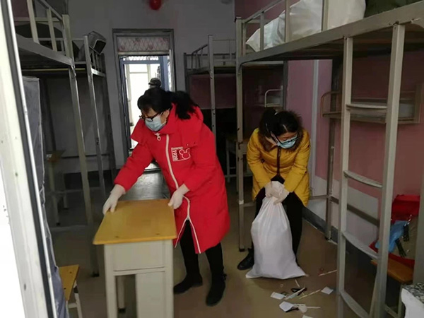 1月13日至15日,护理系还组织40余名教职工参加了两个校区隔离点的物资配备和卫生清扫工作,他们几乎每天都从早上8点工作到晚上,有时候甚至到凌晨2、3点。立寒风、战严寒,他们舍小家、顾大家,不辞劳苦,为防疫工作贡献自己的力量。