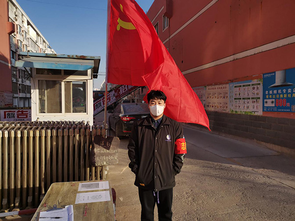 2019级普中医1班崔兆龙回到家乡衡水市阜城县后,积极报名社区防疫志愿者。每天负责排查异地返衡人员、对出入人员进行量体温登记、全面检修维护防疫车辆等工作。在室外零下十几度没有取暖设备的情况下,他的手被冻得颤颤发抖,脚被冻得毫无知觉,但他深知作为一名社区防疫志愿者、入党积极分子,要坚守岗位,为祖国、家园贡献一份力,做好后方守卫军!