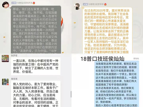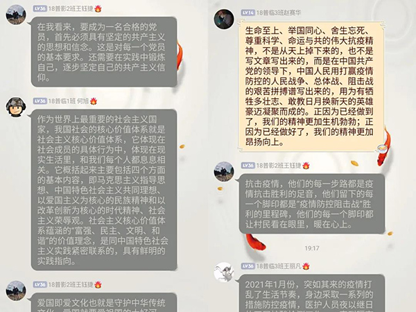培训班上,社科部姜丽芳主任、李宁艳老师、吕文静老师,组织宣传处李丽杰老师、张献昌老师分别开展了《党的性质》《党的指导思想》《从抗疫看中国特色社会主义的制度优势》《坚持党对教育事业的全面领导》《入党程序、注意事项及相关表格的填写》等专题讲座,组织观看了《党史故事100讲》《十九大党章知识精粹》《榜样4》和喀喇昆仑戍边冲突现场等视频。在深入学习的基础上,分组开展了“喀喇昆仑戍边精神”“我身边的战‘疫’故事”、“如何理解爱国,你是如何爱国的”主题研讨交流,党员发展对象纷纷表示要致敬英雄、学习英雄,扎实学好专业知识,努力练就过硬本领,为祖国医疗事业奉献力量。