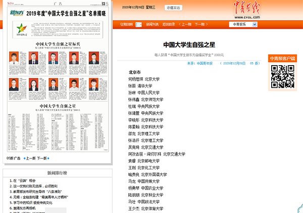 近日,由共青团中央、全国学联、中国青年报社、新东方教育科技集团联合开展的“青春自强 刚健勇毅”2019年度“中国大学生自强之星”活动获奖结果揭晓。开元临床医学系2018级普临1班的陈澳同学荣获“中国大学生自强之星”称号,并获得“中国大学生新东方自强奖学金”2000元。