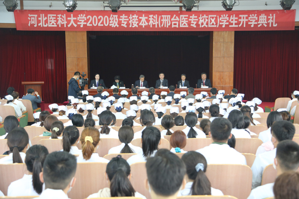 10月11日,河北医科大学2020级专接本新生开学典礼在开元学术报告厅隆重举行。河北医科大学党委书记翟海魂,邢台市委副书记、市长董晓宇,邢台市副市长邓素雪,邢台市教育局党组书记李建强,邢台市政府副秘书长冀胜利,邢台市督查专员张永兴,河北医科大学党政办公室主任梁磊,河北医科大学学生处处长史广玉,河北医科大学招生办公室主任剧亚崇,河北医科大学党政办公室副主任刘学民,开元领导田德荣、郑书深、杜成旭、赵国增、张志强、赵建文、林雪霞、张永格出席。学生工作处、中医系、护理系负责人,助产、康复专业教师代表和2020级康复、助产专业全体新生参加典礼。典礼由学校党委书记田德荣主持。