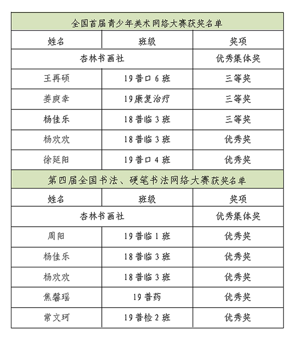 近日,开元学生在全国首届青少年美术网络大赛和第四届全国书法、硬笔书法网络大赛中均取得佳绩,其中,杏林书画社在两项比赛中均被评为优秀集体奖,3人获三等奖、7人获优秀奖。
