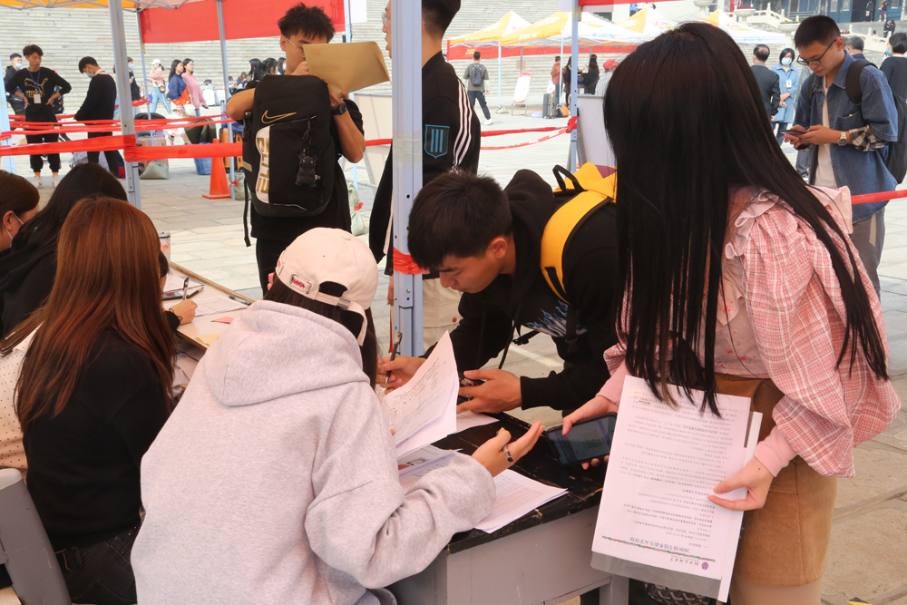 迎新现场气氛热烈,彩虹门高高耸立,条幅彩旗迎风招展,整个校园洋溢着热情、喜庆的氛围。在火车站、高铁站、汽车站新生接待处,志愿者从清晨到深夜24小时轮班坚守,11辆大型客车不间断迎送新生;在校本部、皇寺校区,学校设立了新生报到专用通道,同学们有序排队,出示“录取通知书”“核酸检测阴性证明”,经工作人员体温检测后进入校园;一进校园,志愿者们高举各系的引导牌,主动接过学弟学妹们的行囊,校园内14辆电瓶摆渡车循环往复,直接将新生的行李运送至宿舍楼下;在各班报到点,辅导员认真核对新生信息,收取“居家体温监测表”“返校学生健康卡”等材料完成报到手续;在各收费点,学校推出了微信“一生一码”缴费通道,学生通过扫描二维码可迅速高效地完成缴费;学校还专设新生入学“绿色通道”,为申请资助的学生提供便捷的服务。