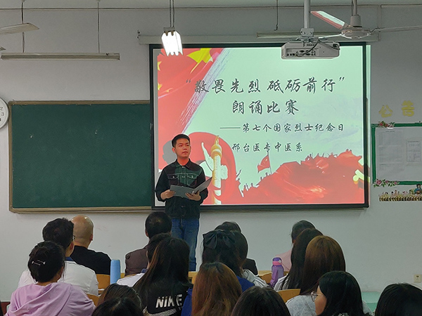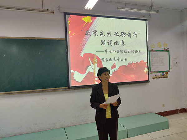 中医系总支书记申丽辉表示,在战争年代,无数革命先烈坚守革命理想,抛头颅洒热血,用青春和生命,捍卫了人类和平事业,换来了新中国的解放与新生,换来了我们今天的和平与幸福。新的历史时期,我们弘扬烈士精神,就是要铭记历史、珍惜现在,在烈士革命精神的指引和激励下,砥砺前行、奋发有为,用智慧和汗水,努力开启新航程,用建设美丽新医专的新成就告慰我们的前辈和英烈!