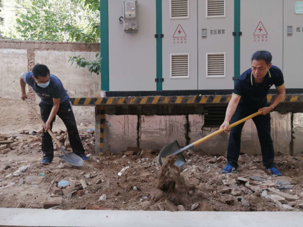 活动中,校领导冲锋在前,党员干部热情高涨,充分发扬不怕脏、不怕苦、不怕累的优良作风和团结协作精神,仅一个多小时就把学生公寓西侧的碎砖清理干净,平整了场地,进一步改善了校园环境。