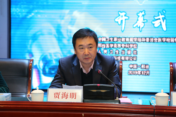 人民卫生出版社有限公司医学教育中心编辑许贵强、重庆华教科技有限公司总经理刘强也做了开幕致词。邢台医专代旭磊、裁判员谢春作为参赛选手和裁判代表在会上庄严宣誓。
