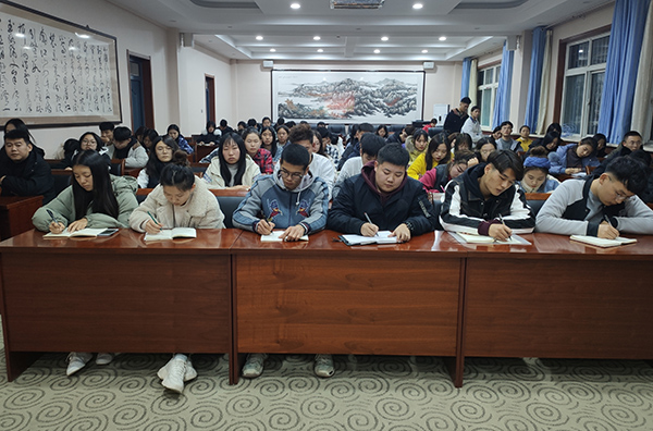 为全面落实共青团从严治团的改革攻坚指示要求,进一步加强基层团支部的组织建设,促进基层团支部工作的制度化、规范化,提高工作水平,11月19日,校团委于图书馆北一层会议室举办团支部工作手册自查互查交流学习活动。学校团委书记杜庆岩、校团委学生干部、各系团总支副书记以及各班团支书代表共100余人参加活动。