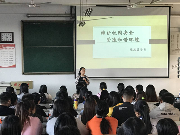 在全国第27个“119消防宣传日”即将来临之际,为增强学生安全防范意识,10月31日下午,临床医学系王叶菲老师在2018级普临3班举办了主题为“维护校园安全,营造和谐环境”的安全教育讲座。系自管会全体成员和各班宿舍长200余人参加。