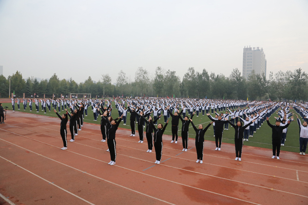 随后,精彩的第九套广播体操表演、武术操表演将开幕式推向高潮。在广播体操表演中,20名来自各部门的教师同600名来自各系的学生们组成前后两个方阵,伴随着充满节奏的韵律,步调和谐一致,动作整齐划一,展现了医专师生蓬勃向上的朝气和活力,描绘出操场上一道靓丽的风景。当观众还在回味广播操那蔚为壮观的场景,场内的音乐骤变,266名同学踩着磅礴雄浑的音乐鼓点涌入会场,带来武术表演《中国龙》,气势恢宏的集体汇演,个性鲜明的南拳、南刀,他们以刚柔并济的拳法,展现了传统武术的丰富多彩,博大精深。