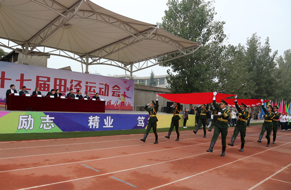 在庄严的升旗仪式之后,党委副书记、校长郑书深致开幕词,指出,秋季运动会是开元落实立德树人根本任务、发展素质教育、推进教育公平、培养德智体美劳全面发展的社会主义建设者和接班人的重要载体,是增强学校凝聚力、丰富校园生活的一项重要举措,对磨炼意志、强健体魄、培养合作意识、增强集体荣誉感等方面具有重要的促进作用。他希望全体运动员要顽强拼搏、遵守规则、服从裁判,争取比赛成绩和精神文明双丰收;全体裁判员要坚持原则,把握标准,客观公正的评判,认真履行裁判员的职责;各班辅导员要做好学生的组织工作,保持良好的大会秩序;全体大会工作人员要增强服务意识,尽职尽责做好后勤保障工作。共同将此次运动会开成文明、热烈、精彩、向上的盛会。2018级普口技班王尘瑜同学、体育教师窦勇分别代表运动员和裁判员庄严宣誓。