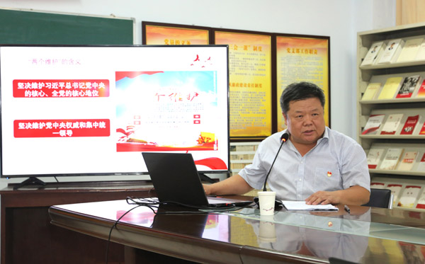 郑书深校长结合马克思主义政党建设的基本规律,联系中国共产党革命建设实践,从“两个维护”的含义、“两个维护”的三个逻辑、正确认识“两个维护”的深刻内涵、把“两个维护”落实在行动上四个方面进行了讲授。