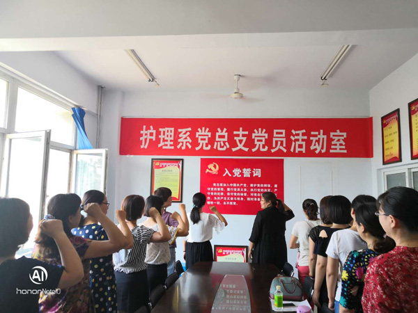 学校附属医院党委、各党党总支的42个党支部组织党员开展了重温入党誓词活动,1289名党员同志面对鲜红的党旗,举起右手,握紧拳头,怀着满心炽热忠诚的情怀,重温入党誓词:“我志愿加入中国共产党……随时准备为党和人民牺牲一切,永不叛党。”铿锵有力的誓词,让每一位党员再次接受心灵的洗礼,一字一句,庄严而豪迈,体现了党员同志们对中国共产党的无比热爱和忠诚。