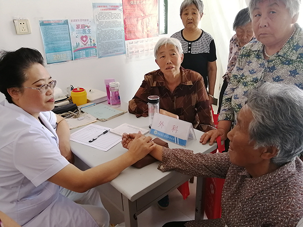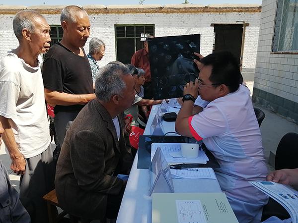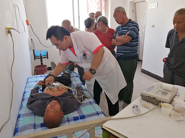 医疗队员临床经验丰富,不仅对村民进行基本的诊察,还耐心讲解保健常识、制定诊治方案,指导他们注重生活保健,提高身体素质。中医系梁丽英教授结合多年临床、教学经验,望闻问切,为村民提供中医治疗方案,就诊人员络绎不绝;第二附属医院疼痛科主任医师贾文平,诊治经验丰富,寥寥数语的询问,就能快速准确找到病根,用手一捏,疼痛症状当即得到缓解;心血管科医师刘洋一下车就架起设备为村民做心电图,一上午都没有顾上喝水……