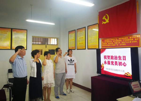 首先,学校党委副书记李建广带领过生日的党员同志面对党旗庄严宣誓。随后,大家集中学习了国旗、国徽和国歌知识教育和翻译文化终身成就奖获得者宋书声的先进事迹。在座谈交流中,过生日的同志们一一发言,满怀激动的心情表达对党组织培养的感激,对此次政治生日的难忘,表示将不断提高党性修养,努力工作,为学校发展作出贡献。之后,系党总支书记申丽辉为7名党员赠送了精美的生日贺卡,希望同志们以过政治生日为契机,时刻牢记党员身份,进一步增强党员的归属感和荣誉感,加强理论修养、政治修养、道德修养和纪律修养,不忘初心、牢记使命,永葆共产党员先进性。