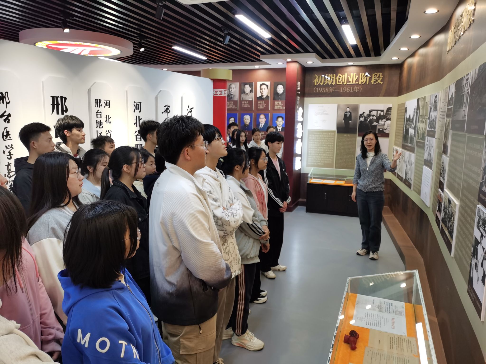 参观中,校史讲解员带领同学们一起回顾了学校在历史长河中几经起伏的风雨历程;详细介绍了新时期学校在师资队伍、教学改革、本科教育、思政教育、精神文明建设等方面取得的辉煌成就;了解了为医疗卫生事业作出贡献、为母校赢得荣誉的众多优秀学子突出事迹以及多年来学校在办学探索中形成的鲜明办学特色。一张张图片、一件件展品、一个个场景,无不向同学们叙述着一代代邢医人艰苦创业、锐意进取,推动学校不断发展壮大的奋斗历程。