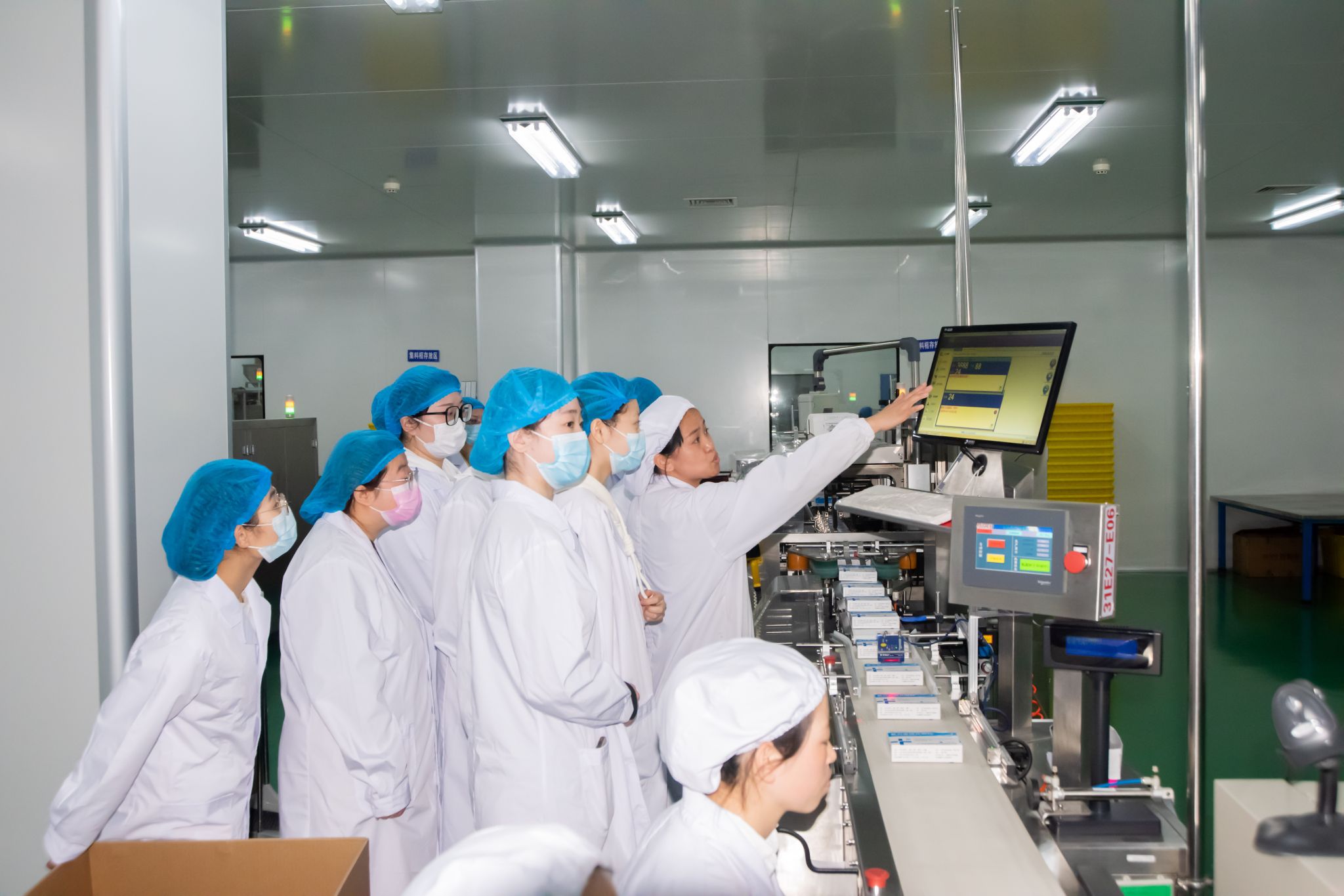 见习中,学生们在工作人员带领下进入生产制造药品的第一线。在先进生产设备前,工作人员详细为学生介绍设备工作原理;在药品外包装间,工作人员从制粒、筛选、包装等流程逐一讲解,并对同学们提出的问题进行了详细的解答;走出包装区,工作人员又带领学生在药品包材库和成品库深入感受包材和药品具体储存管理要求,让大家对一线药品储存保管的要求有了更加深刻的了解。在企业讲解老师的带领下,同学们边听边看、边询问边记录,认真了解药品从生产研发到销售的整个过程。