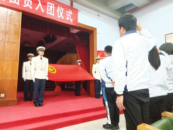 随后,123名新发展团员进行了入团宣誓。在神圣庄严的入团宣誓仪式上,国旗护卫队手擎团旗,全体新团员庄严宣誓“我志愿加入中国共产主义青年团……”,彰显了共青团组织的神圣感。