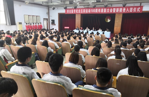 4月28日下午,邢台医专纪念五四运动100周年表彰大会暨新团员入团仪式在学术报告厅举行。校团委书记杜庆岩、各系团委书记、优秀团员代表以及新发展团员共300余人参加活动。