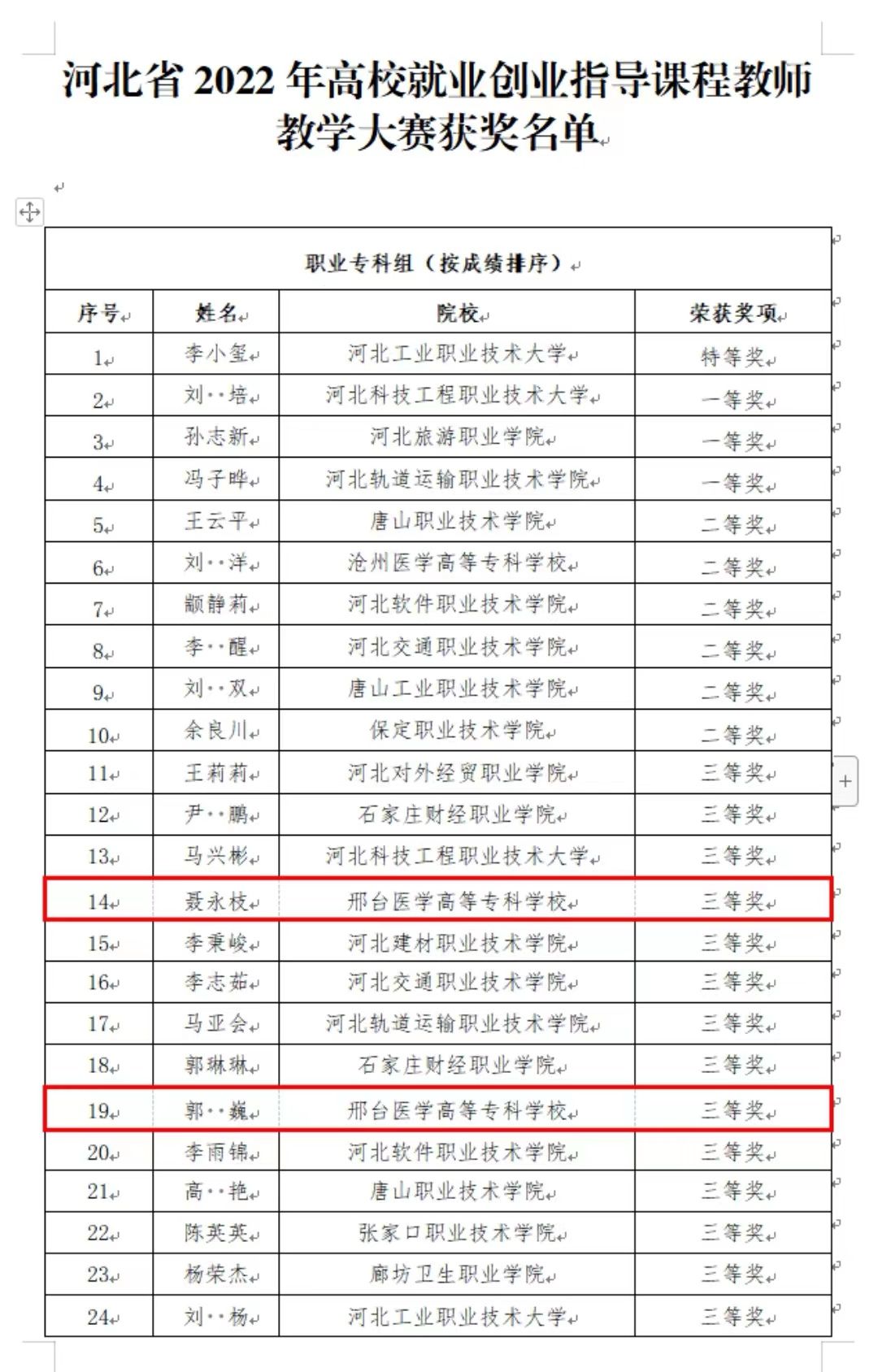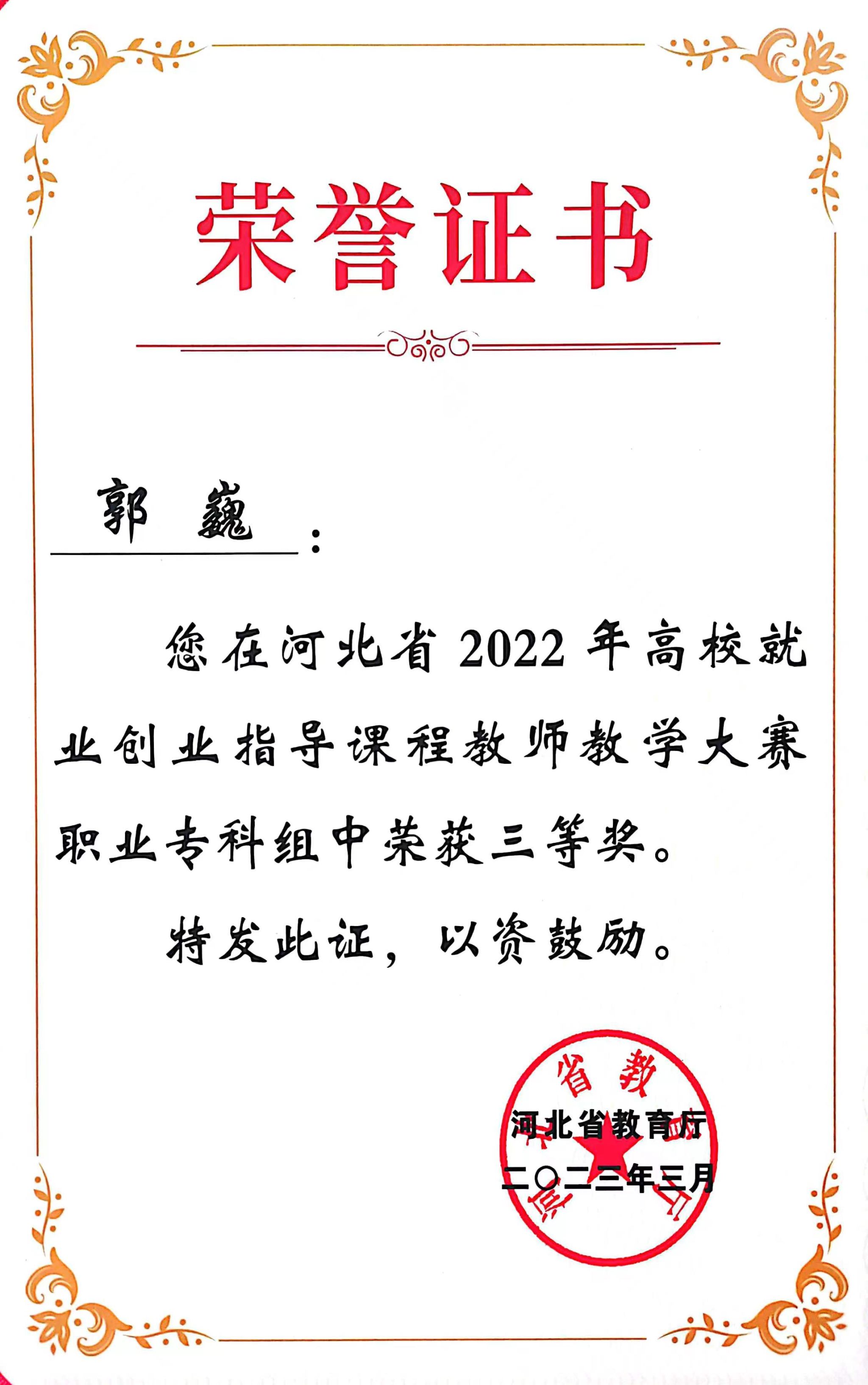 近日,河北省高校就业创业指导课程教师教学大赛落下帷幕,经过激烈比拼,开元郭巍、聂永枝两名教师从全省400余名参赛选手中脱颖而出,荣获职业专科组三等奖。