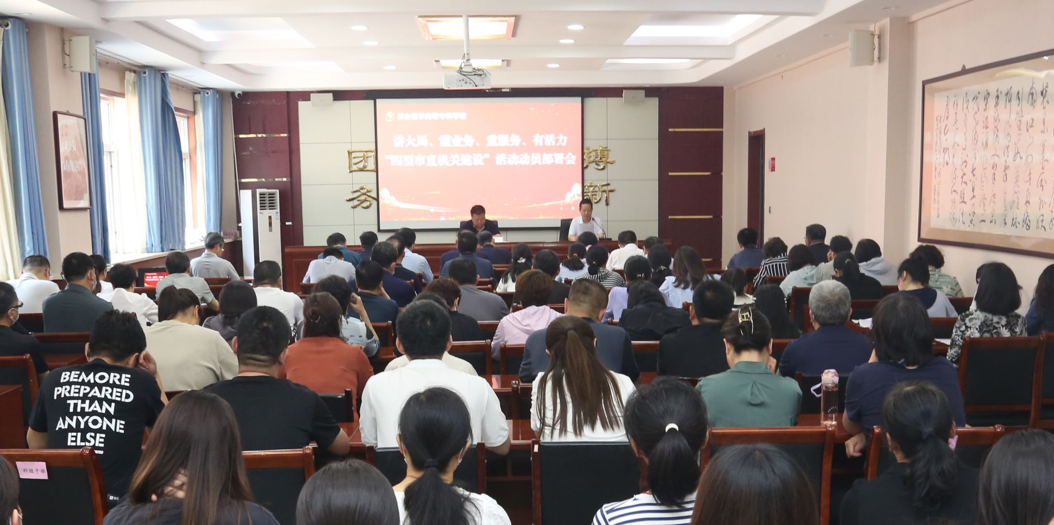 郑书深校长强调,要把思想、行动统一到市委、市政府的安排部署上来,以昂扬的姿态、实干的状态投身本职工作,不断把“四型市直机关建设”活动引向深入,为建设特色鲜明、实力突出的医学类应用型本科院校凝聚强大合力,为“太行泉城、美丽邢台”建设做贡献、立新功!