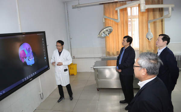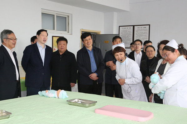 魏吉平一行先后到学校皇寺校区和校本部进行了实地考察。在学校第三附属医院康复中心和老年养护中心住养房间、餐厅和活动室,详细了解医院和养护中心运营情况;深入护理系、基础医学部实验实训室,了解学校教学工作和实验实训条件建设情况。