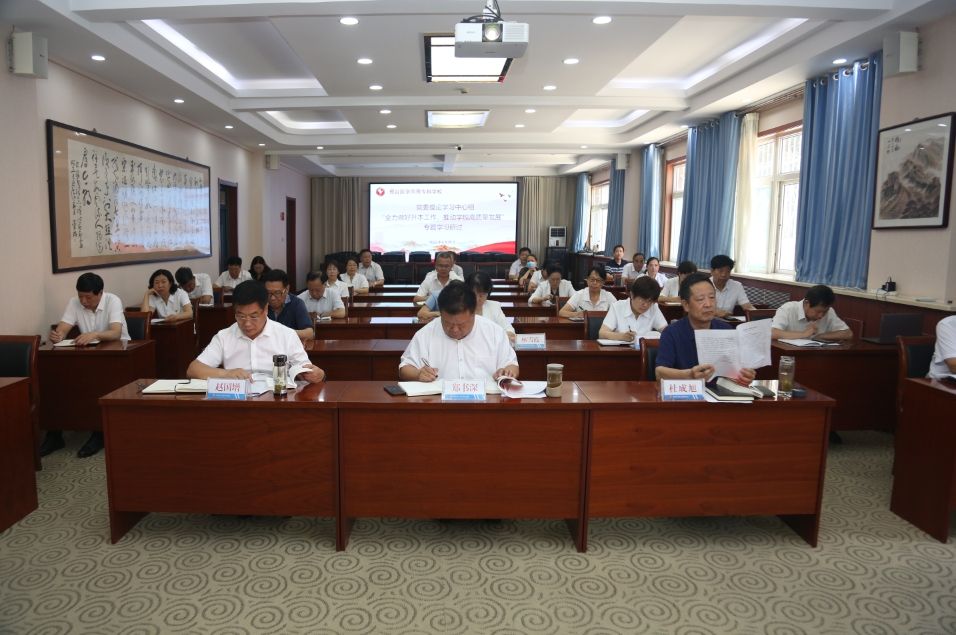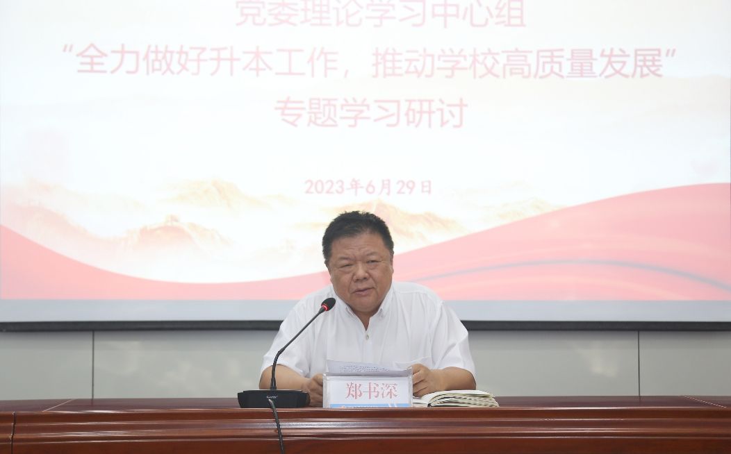 6月29日下午,学校召开党委理论学习中心组(扩大)会议,深入学习《办好人民满意的教育》,围绕“全力做好升本工作,推动学校高质量发展”主题进行研讨交流。党委副书记、校长郑书深主持会议并作总结讲话,领导班子成员及处级中层正职干部参加。