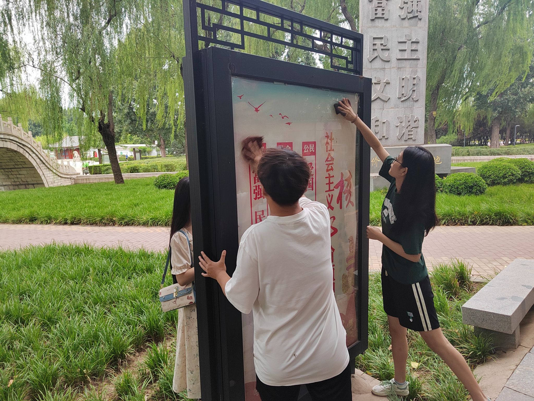 各基层党组织组织党员和入党积极分子在学校校园、医专生活区、达活泉公园等地开展志愿服务活动。活动中,志愿者们拿着捡拾夹、垃圾袋、抹布、拖把等工具,顶着烈日照射,不怕苦、不怕累,分工协作,将路边、绿地里的垃圾、杂物清理干净,将文明展板展架用抹布擦拭干净,对发现的不文明行为进行劝导,并开展宣传推广“太行泉城、美丽邢台”城市品牌活动,为师生、居民、市民营造了一个干净舒心的环境。