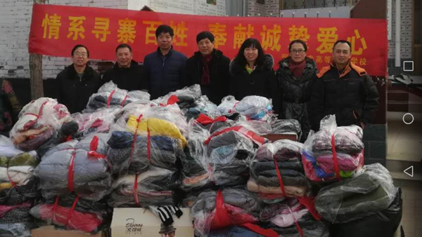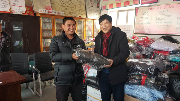 工会工作人员对捐赠的衣被认真进行筛选、归类、装袋、打包,于1月11日中午装车,由工会常务副主席孙海燕、副主席张志华及学校结对帮扶责任干部马涛、杨福江、申社林等一行五人送往对口扶贫村新河县寻寨镇南王家庄村。学校驻该村扶贫工作队队长魏双平积极与村干部联系对接,组织贫困群众前来领取衣物,当满载过冬棉衣棉被的爱心车到达寻寨镇南王家庄村时,村民热烈欢迎,看到满车的衣物,村民们纷纷表示感激之情,感谢邢台医专一年来对村里各种扶贫援助。马涛、杨福江、张立明为结对帮扶对象挑选合适衣物,并叮嘱他们注意保暖,预防感冒。 帮扶户们激动地说:“我们忘不了邢台医专党委的关怀,忘不了邢台医专师生的深情厚谊!天虽冷,心里暖!”