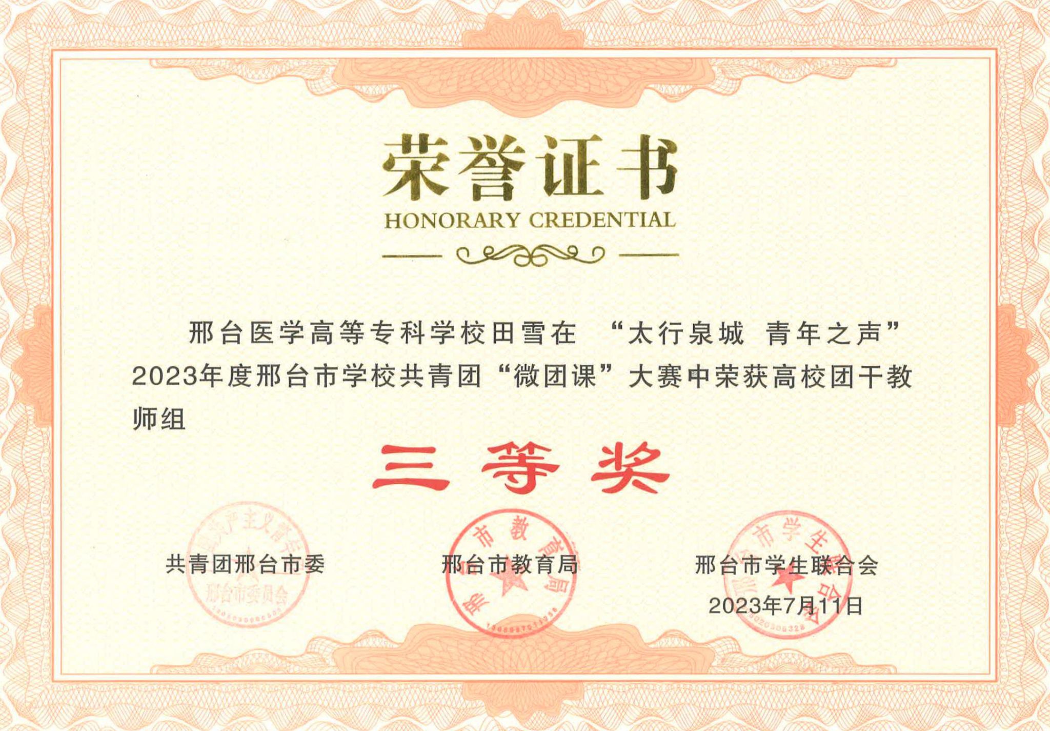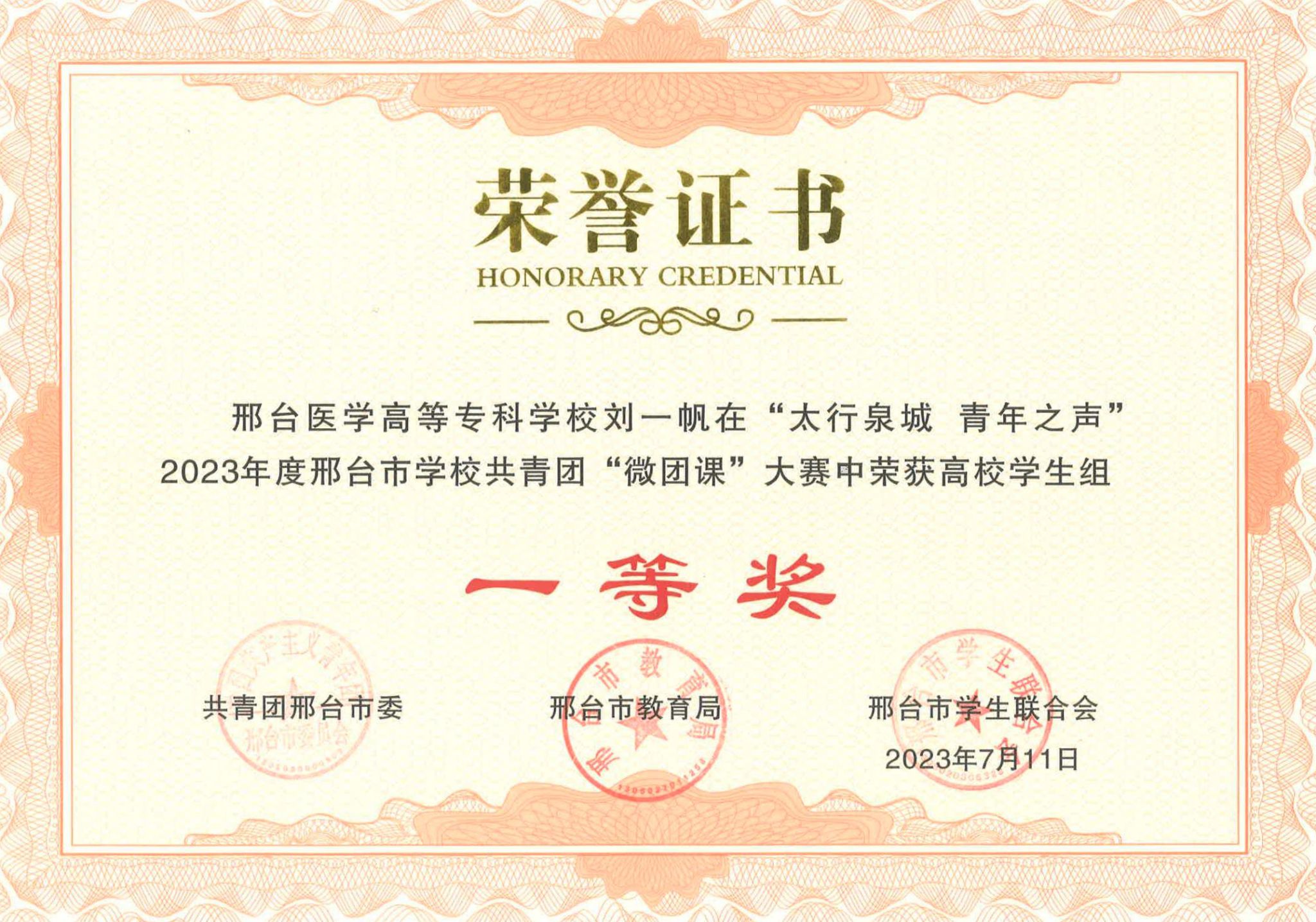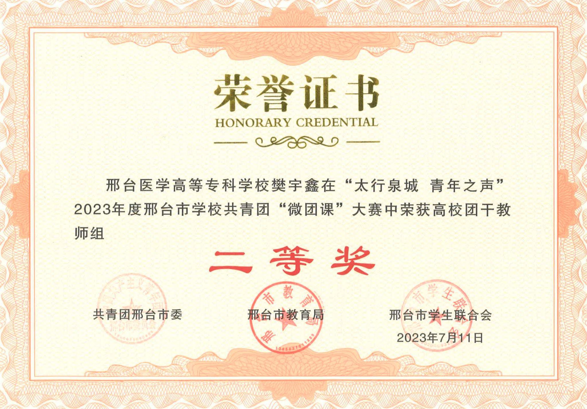 近日,由共青团邢台市委、邢台市教育局、邢台市学生联合会主办的2023年邢台市学校共青团“微团课大赛”成绩揭晓。开元荣获高校团干教师组一等奖1名、二等奖1名、三等奖1名,高校学生组一等奖1名。