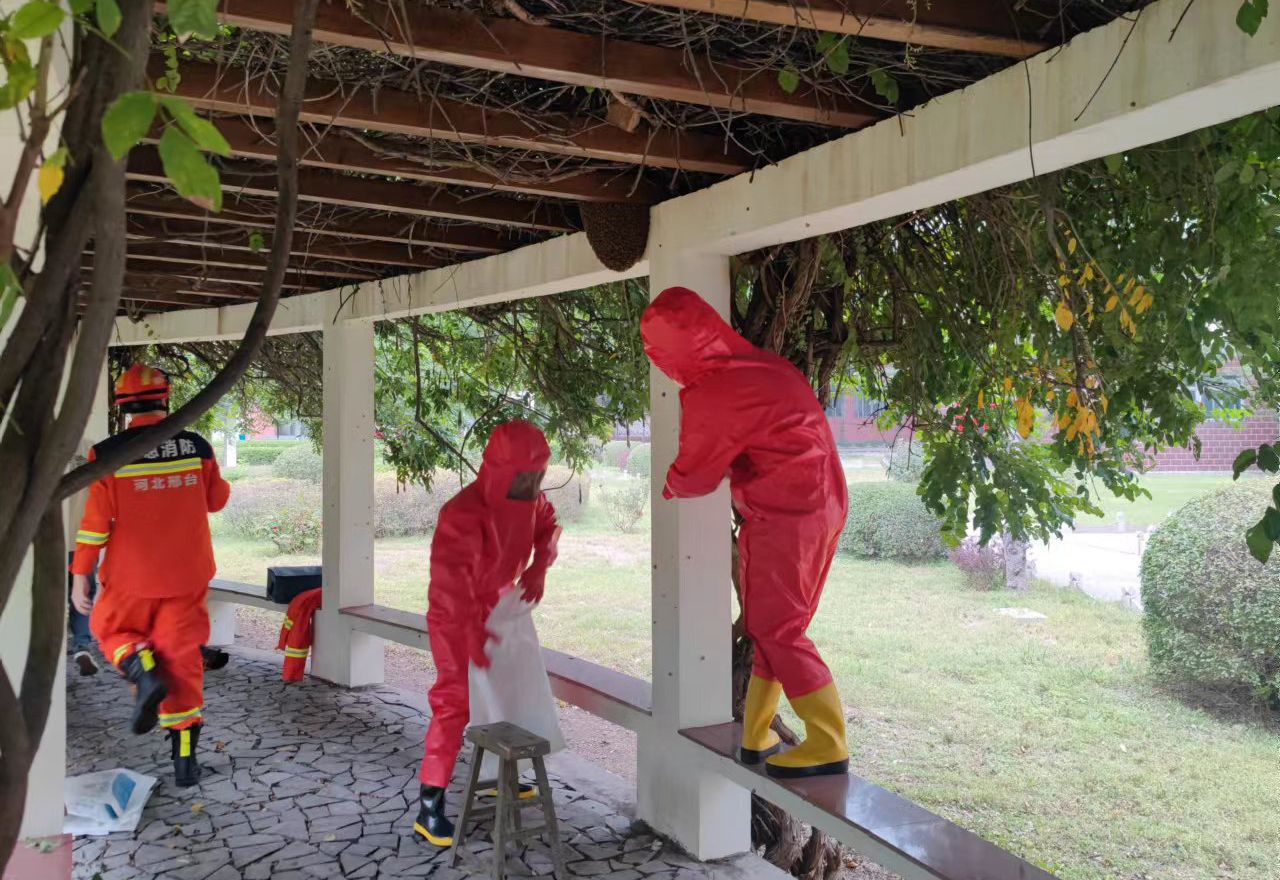 排查中,工作人员认真仔细、不走过场、力求实效,围绕消防安全、校舍安全、水、电、燃气安全、食品安全、基础设施设备安全等方面,对教室、宿舍、实验室、图书馆、体育设施场地、配电室、锅炉房、食堂等重点区域进行了全面细致排查,对存在的问题认真拍照、记录,建立台账清单,安排专人负责,明确整改时限,确保全方位不留死角。全力做到安全隐患早发现、早预防、早整改,尽最大可能为师生提供安全、和谐的校园环境。9月19日,安全工作处针对排查中发现的三处体积较大马蜂窝,专门邀请永祥街应急救援站,在专业技术及装备的保障下,采用高压水冲、手工清理等方式进行了清除。