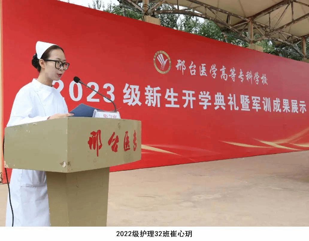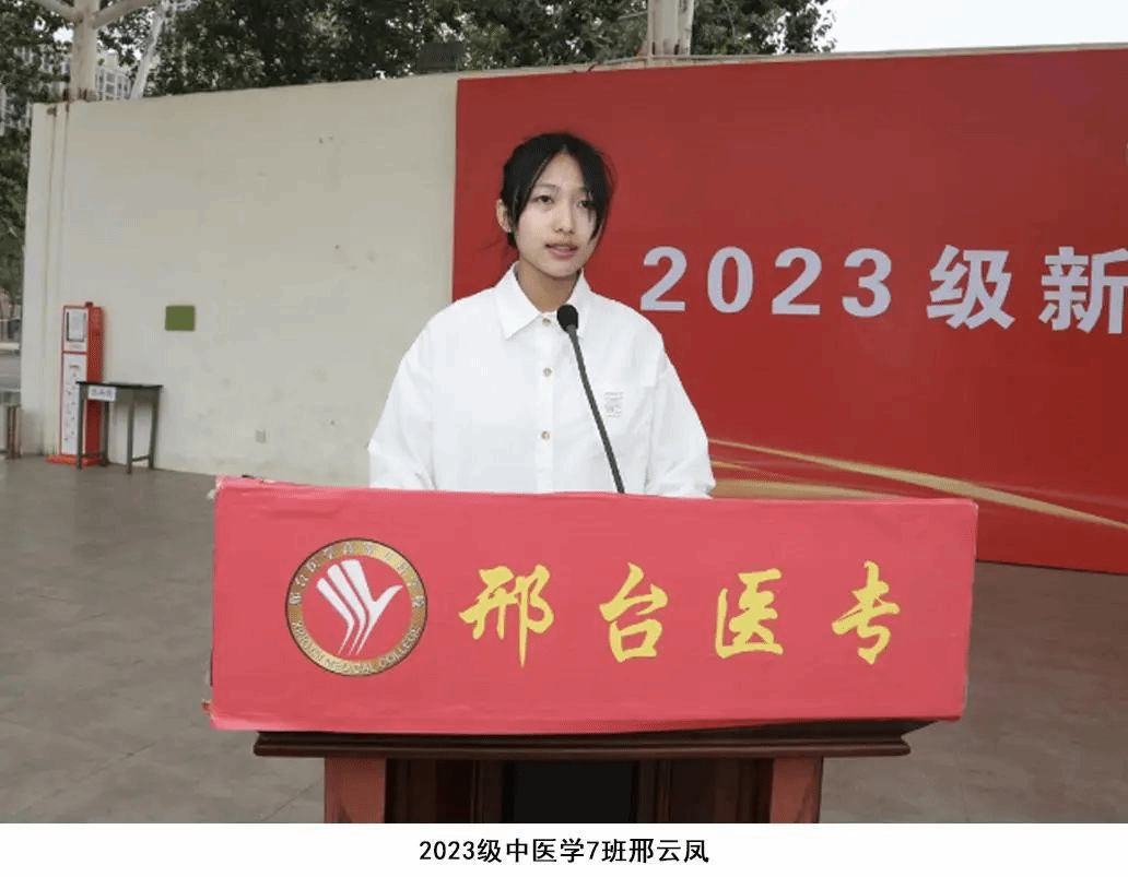 2023级药品经营与管理1班杨孜偌和2023级中医学7班邢云凤作为新生代表发言。她们表示,时序轮替中,始终不变的是追梦者的身影;历史坐标上,始终清晰的是奋斗者的足迹。今后将发扬“团结、拼博、务实、创新”的医专精神,秉承“厚德、博学、合作、创新”的学风,练就仁心医术;坚持同心、同德、同行,积极进取、追求卓越,成就无限可能,让青春在邢台医专的校园里绽放出最灿烂的光彩。