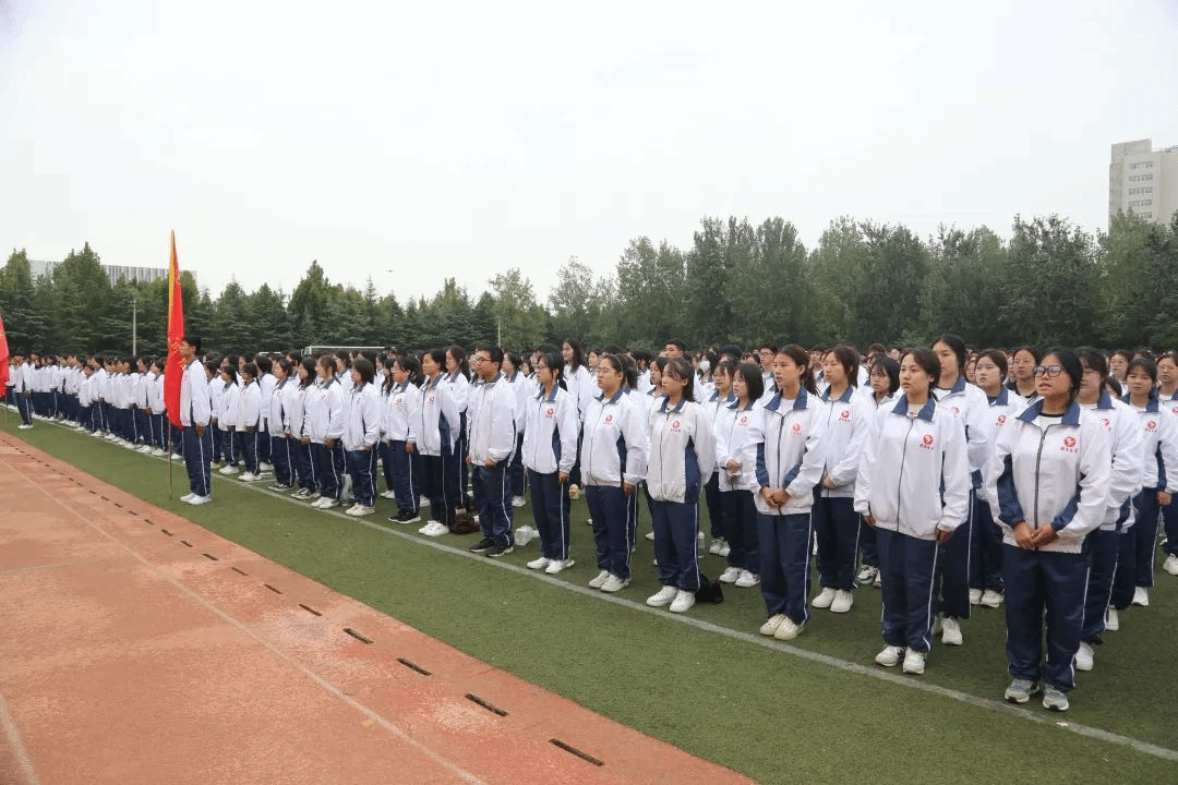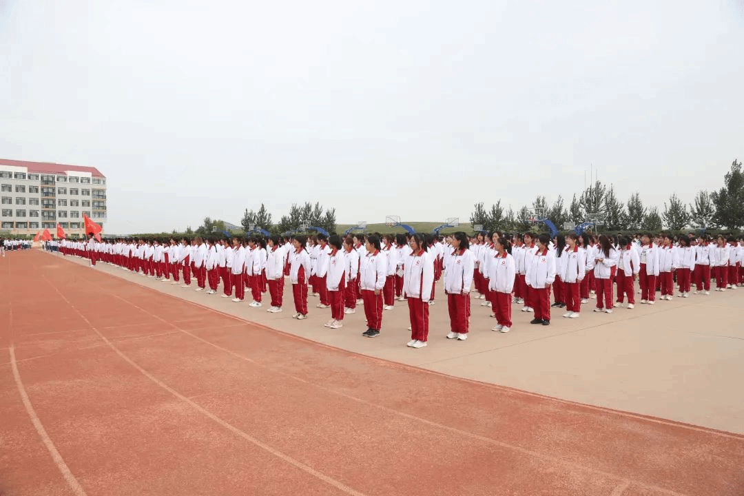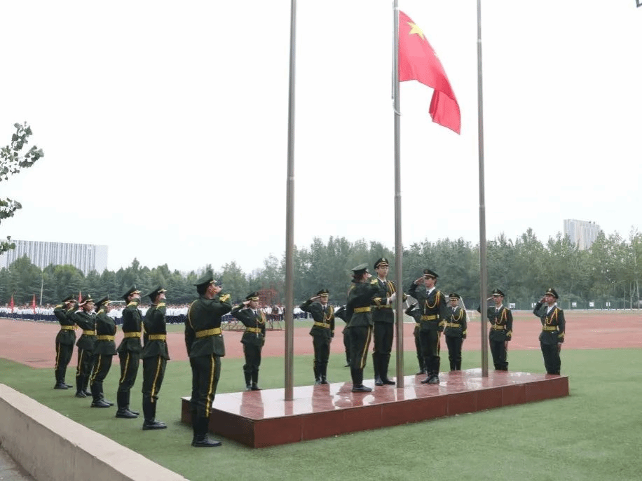 国旗队步伐庄严,缓缓入场,“升国旗,奏唱国歌!”伴随着雄壮的《义勇军进行曲》,五星红旗冉冉升起,全体师生起立,面向国旗行注目礼。